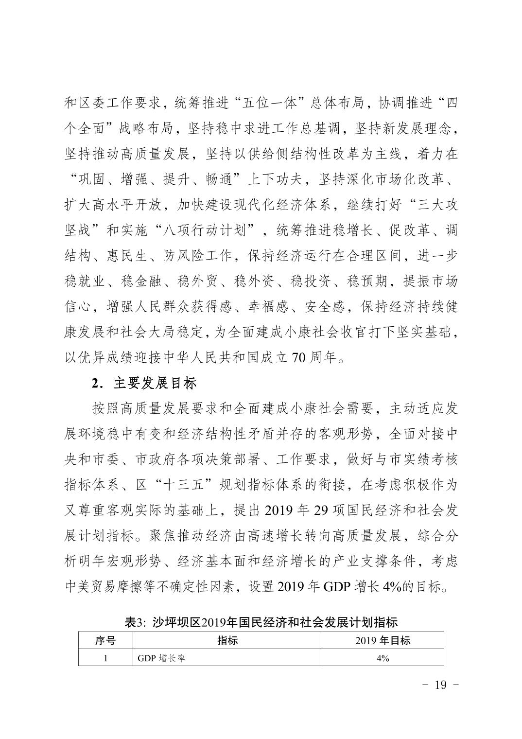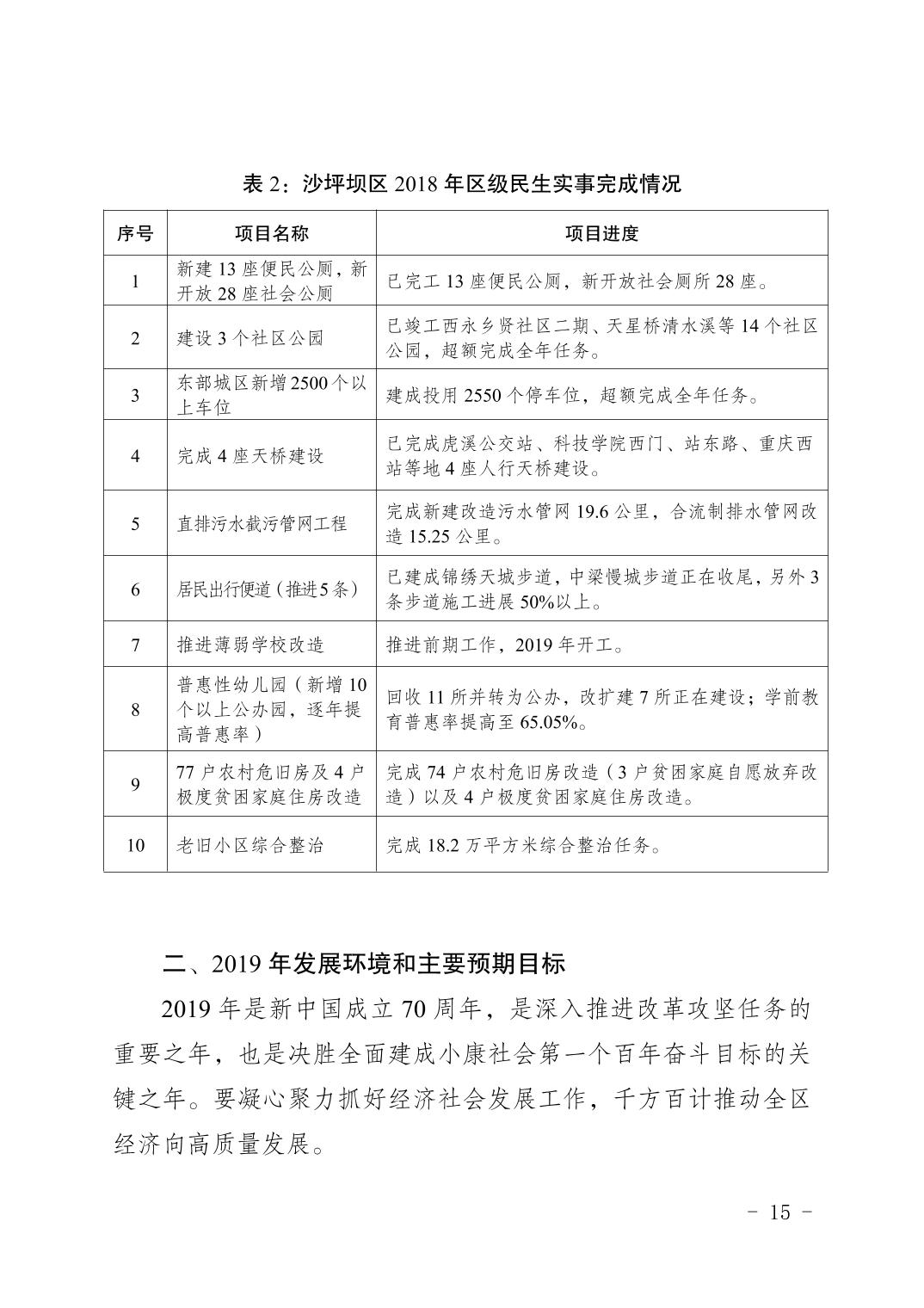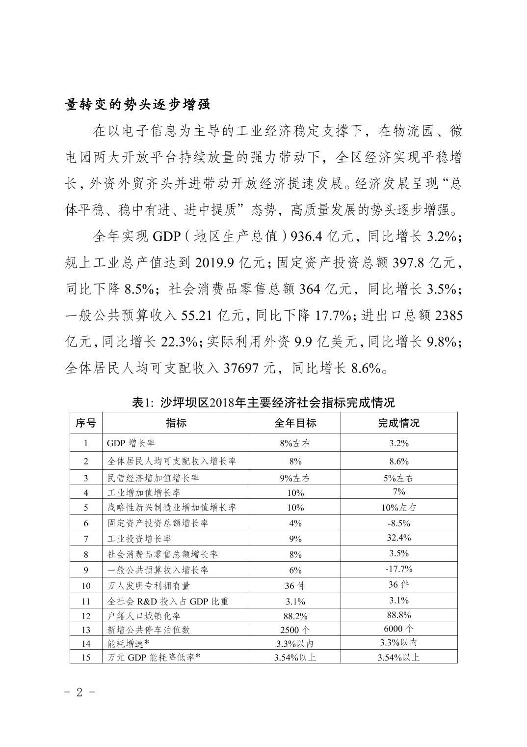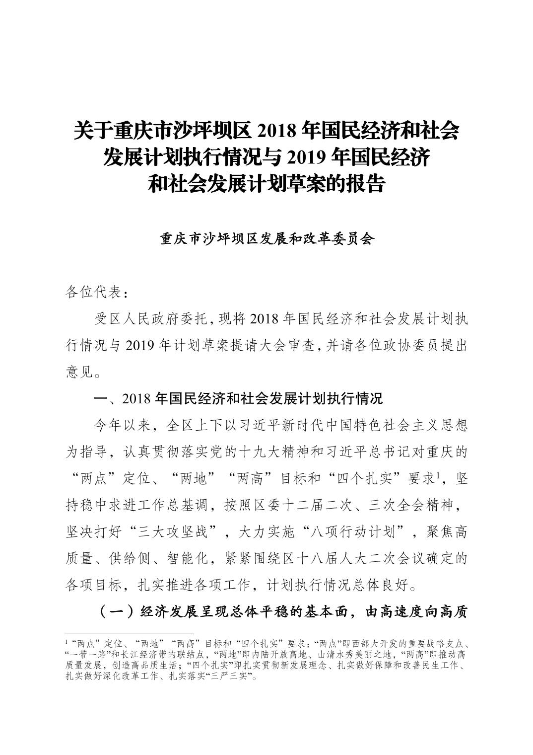 關于重慶市沙坪壩區2018年國民經濟和社會發展計劃執行情況與2019年國民經濟和社會發展計劃草案的報告