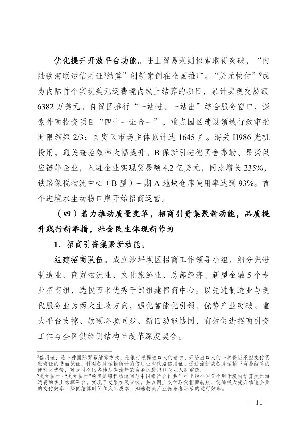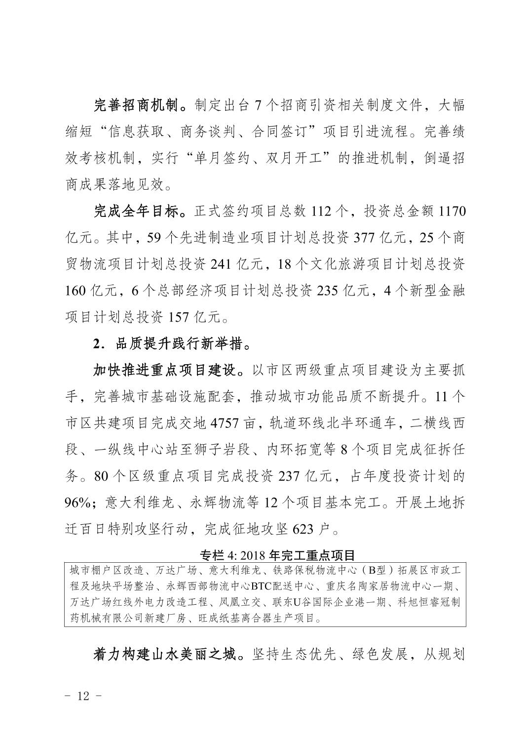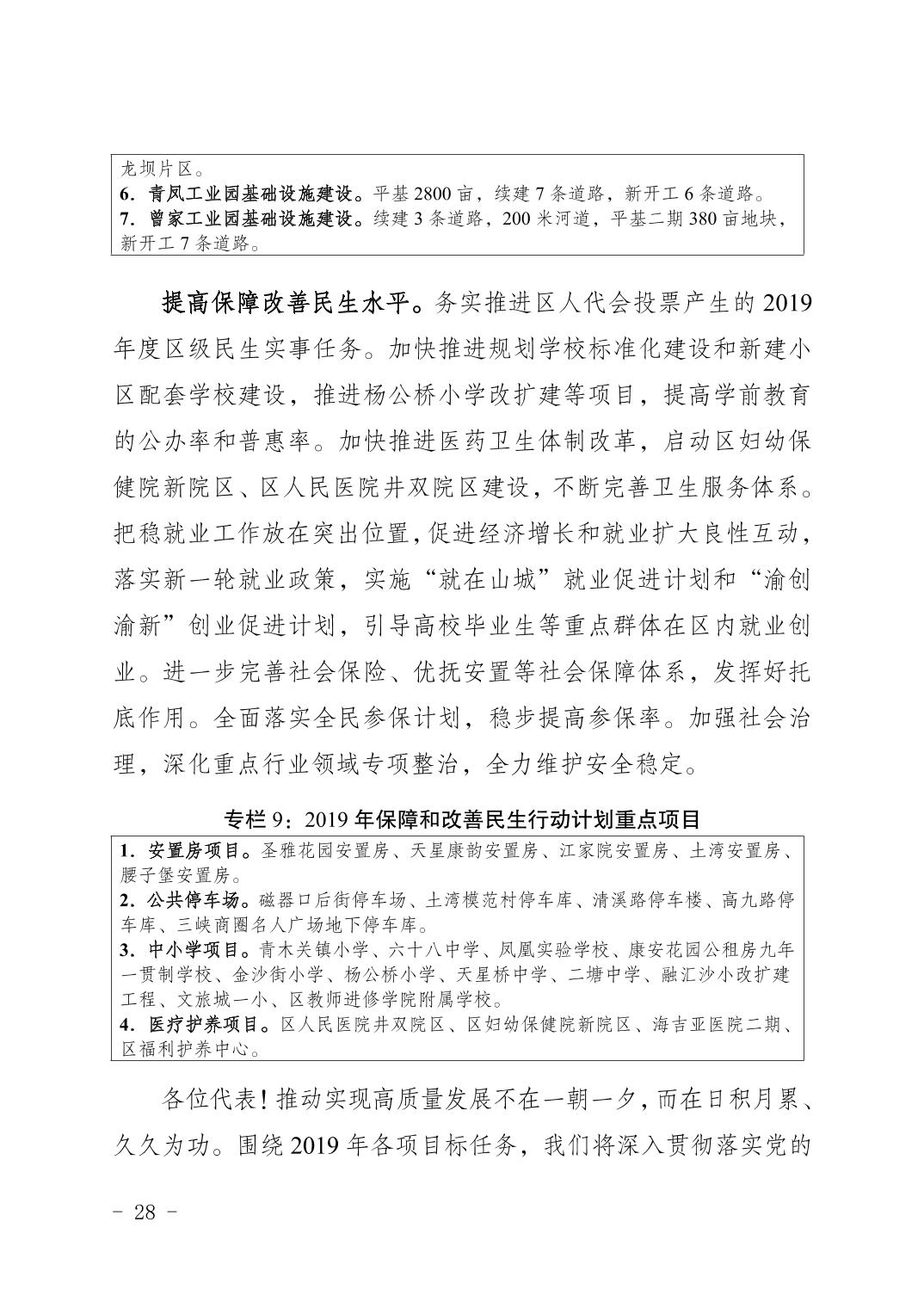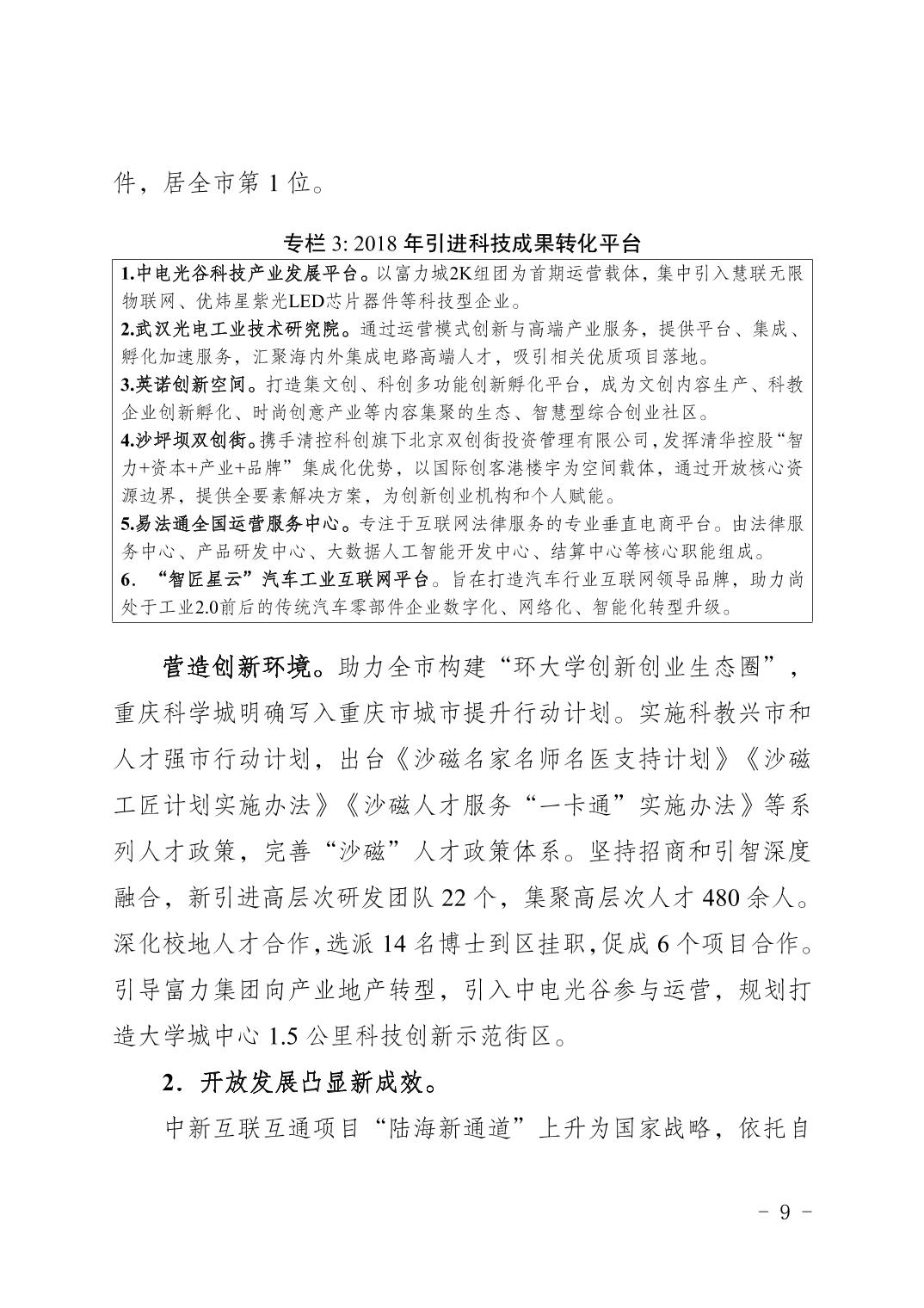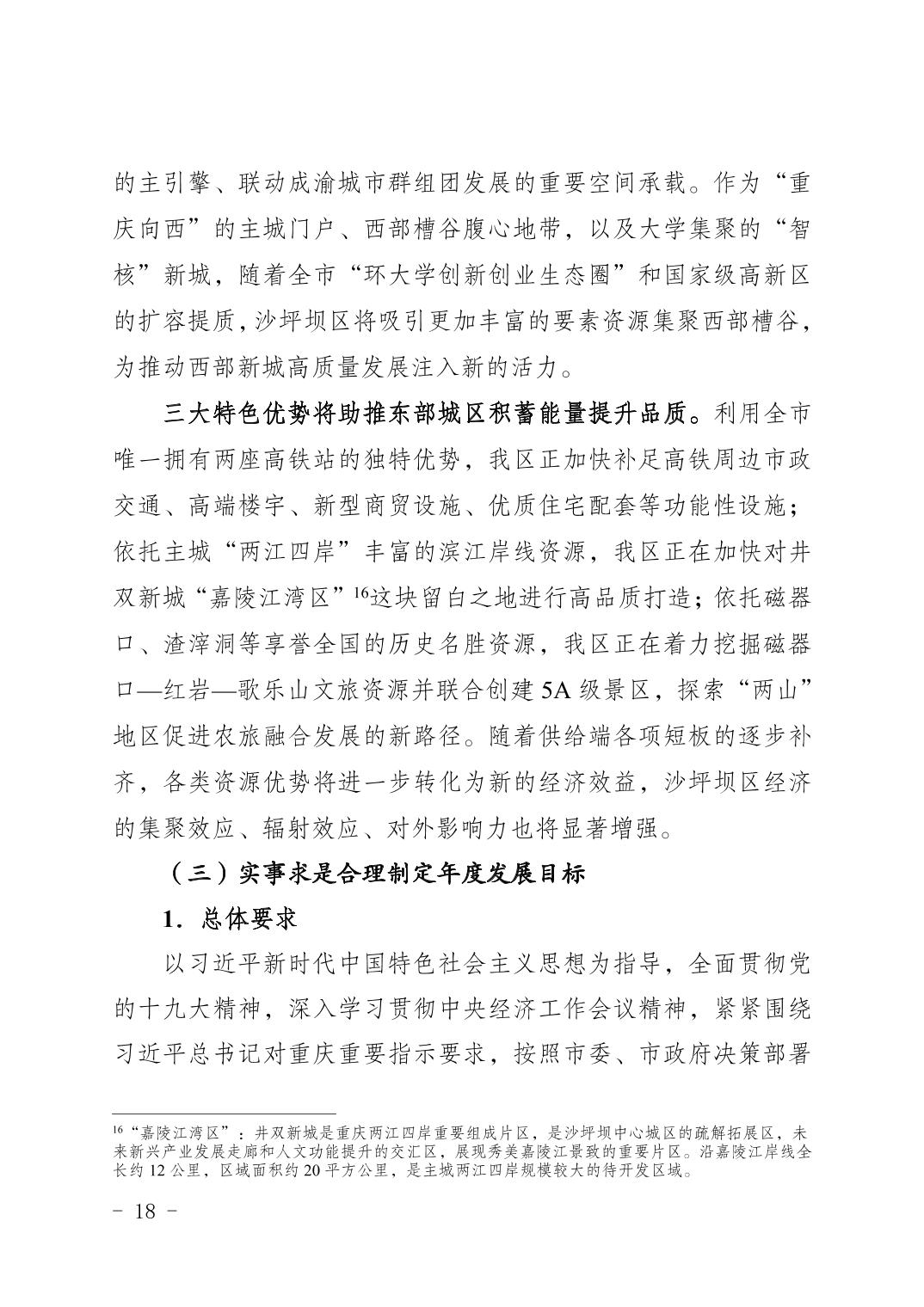 關于重慶市沙坪壩區2018年國民經濟和社會發展計劃執行情況與2019年國民經濟和社會發展計劃草案的報告