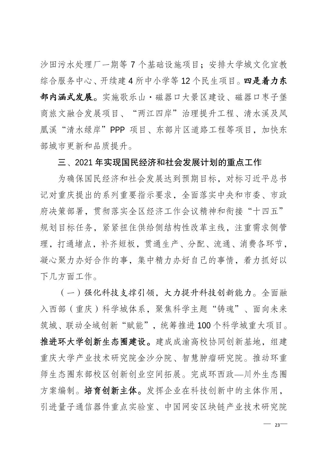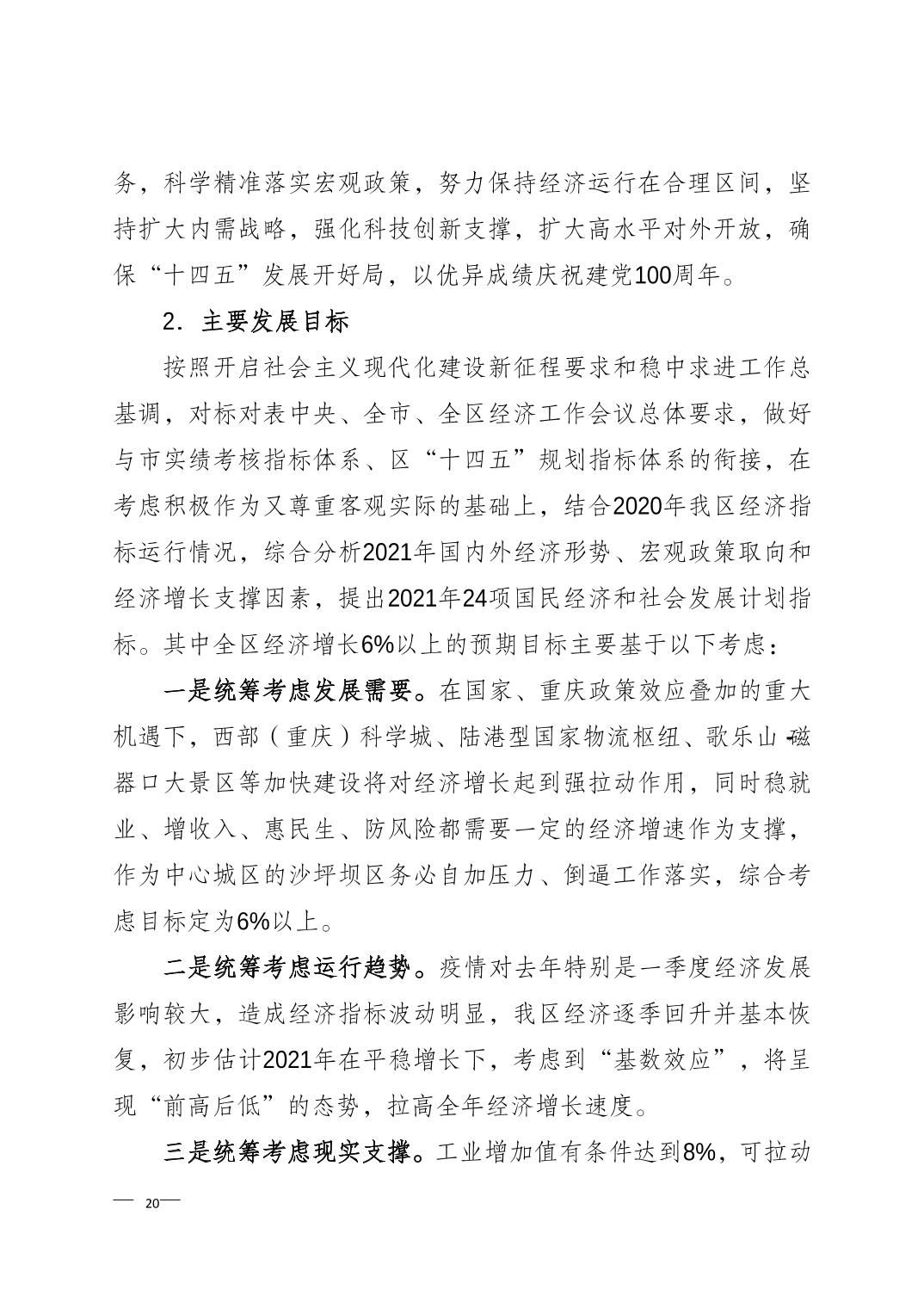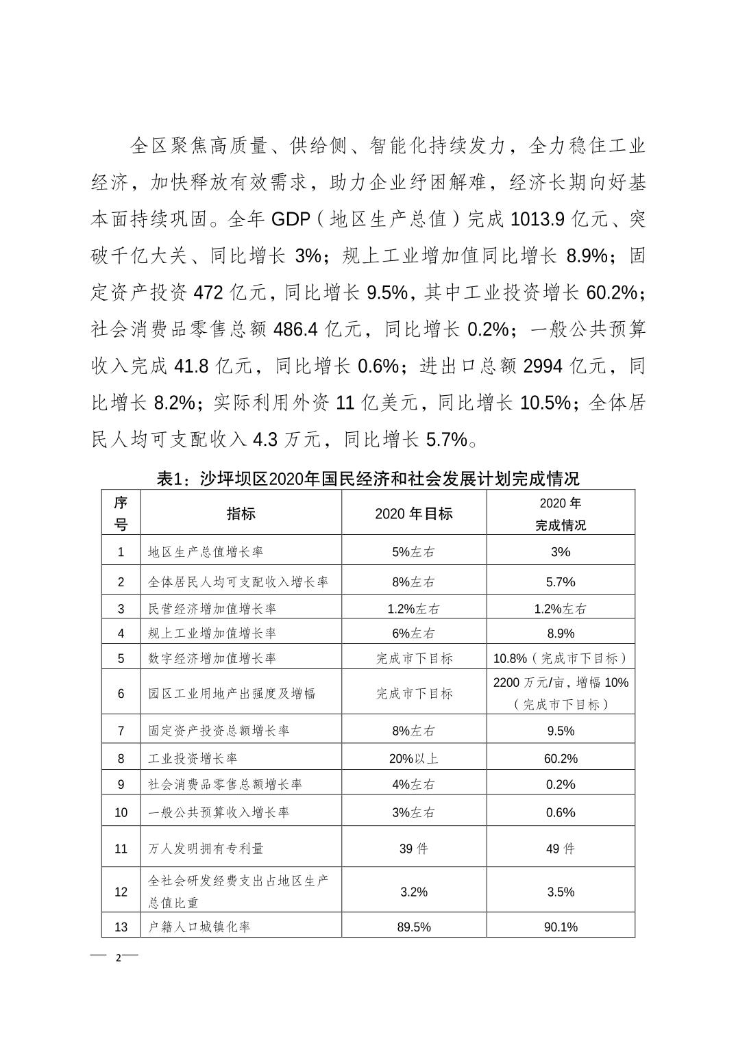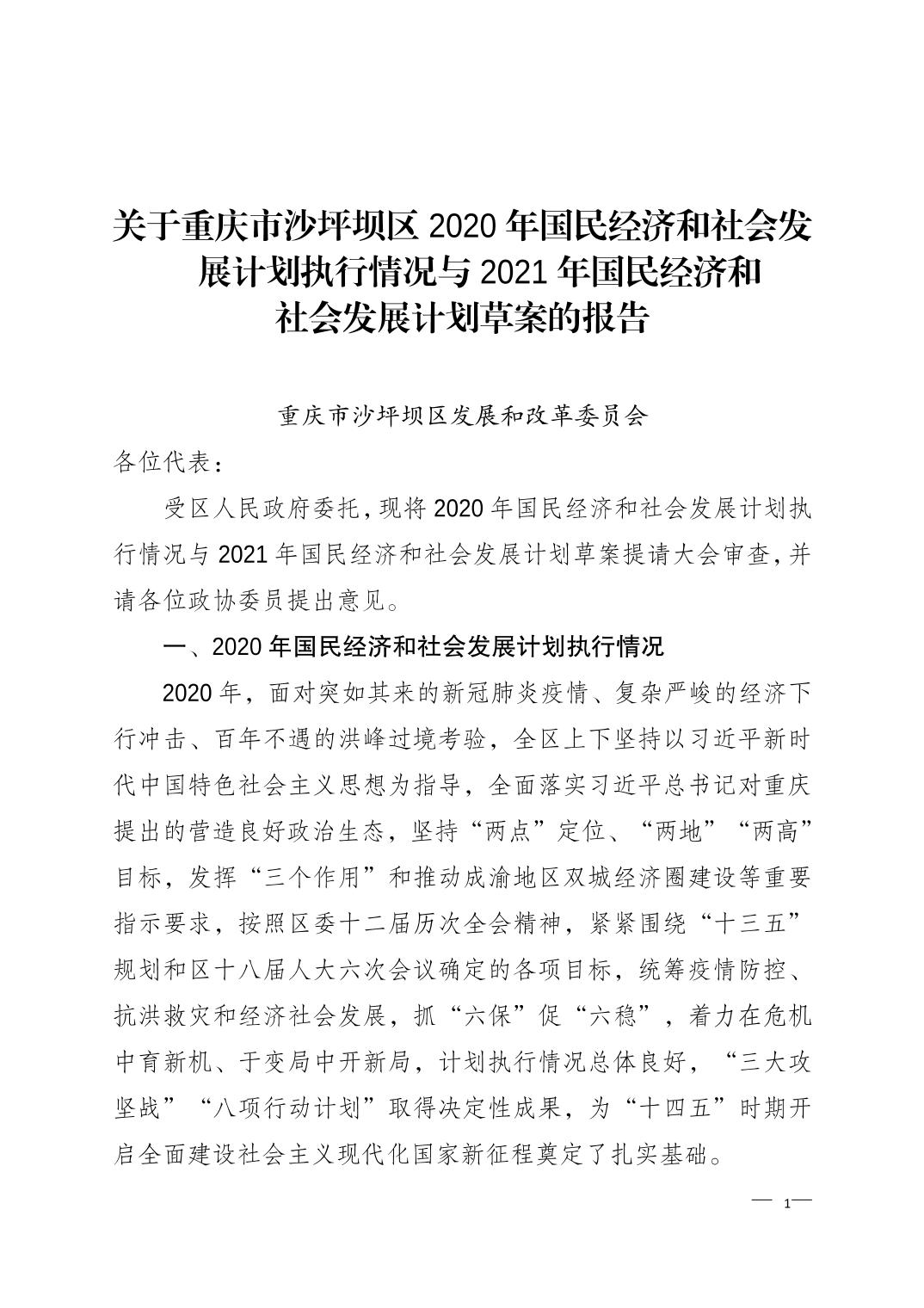關(guān)于重慶市沙坪壩區(qū)2020年國民經(jīng)濟(jì)和社會(huì)發(fā)展計(jì)劃執(zhí)行情況與2021年國民經(jīng)濟(jì)和社會(huì)發(fā)展計(jì)劃草案的報(bào)告