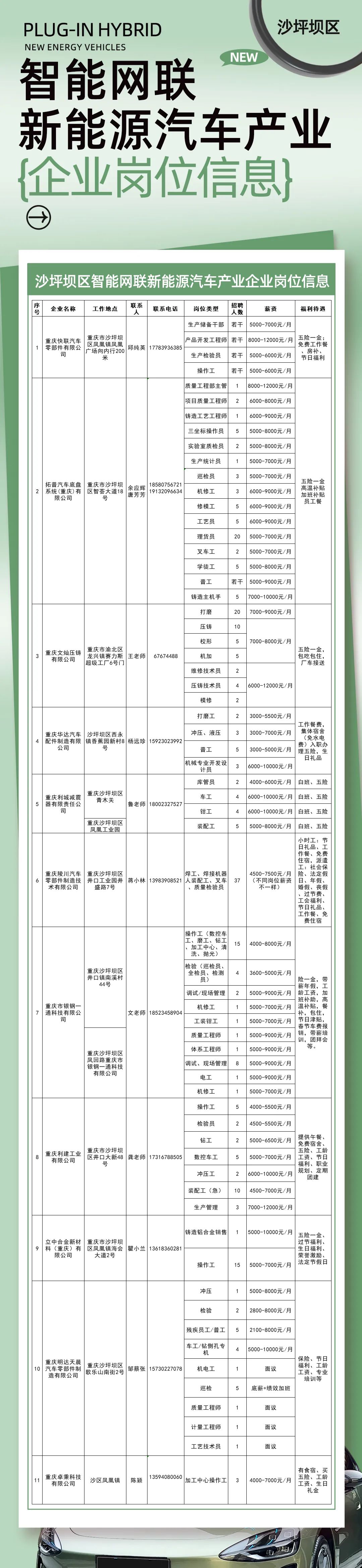 沙坪壩區智能網聯新能源汽車產業企業崗位信息