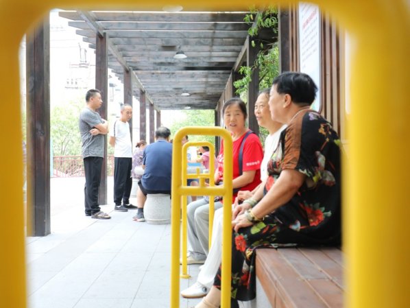 沙坪壩區(qū)石井坡街道中心灣社區(qū),居民在適老化改造的小區(qū)公共活動(dòng)空間休閑聊天。沙坪壩區(qū)融媒體中心供圖
