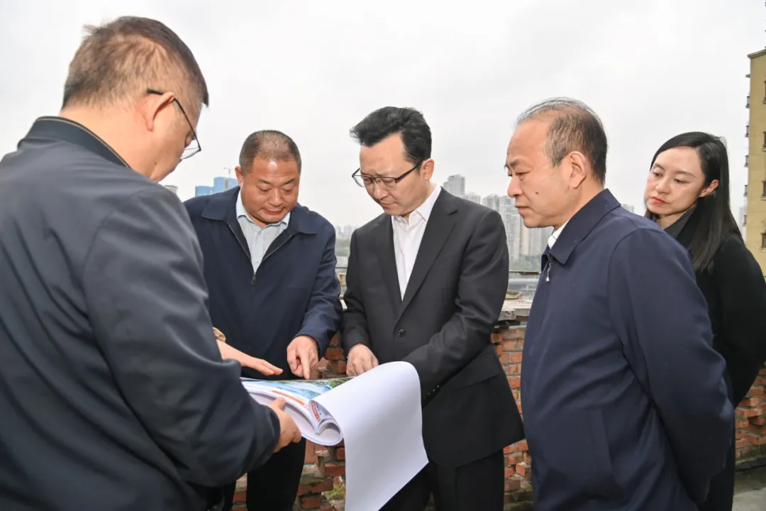 在松林坡片區城市品質提升項目現場,祁美文認真聽取項目規劃、景觀打造及資源盤活情況的匯報,仔細詢問當前存在的難點問題。他說,要突出功能完善與品質塑造雙輪驅動,深度銜接環大學創新生態圈建設,更大力度服務支持重慶大學建設發展,有機融合高校智力資源與創新氛圍,在設計中彰顯科技感、現代感與綠色感,讓片區風貌與人文氣質相得益彰,通過場景營造聚人氣、興產業,真正實現以城市更新帶動產業升級、生活提質,推動城市高質量內涵式發展,著力讓城市更新成果更多惠及于民。